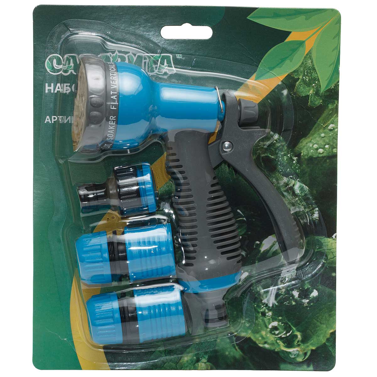 Комплект для полива SXG-21010T3 (пистолет-душ 7режимов + 1/2 быстросъём + 1/2 автостоп + адаптер с переходником)