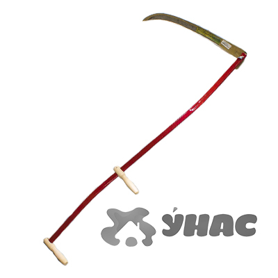 Ручная коса представляет собой: длинное металлическое лезвие загнутое чуть внутрь с приделанным к нему в районе основания косы железной рукояткой . Для безопасности лезвие фиксируется фиксатором.