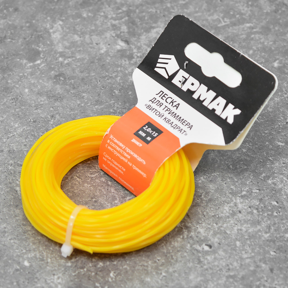 Леска для триммера 2,0мм 15м квадрат Ермак
