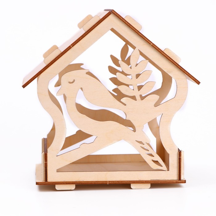 Заготовка для творчества выполнена из экологичного материала — древесины. Соберите кормушку вместе с ребёнком и заботьтесь о птицах холодной зимой.