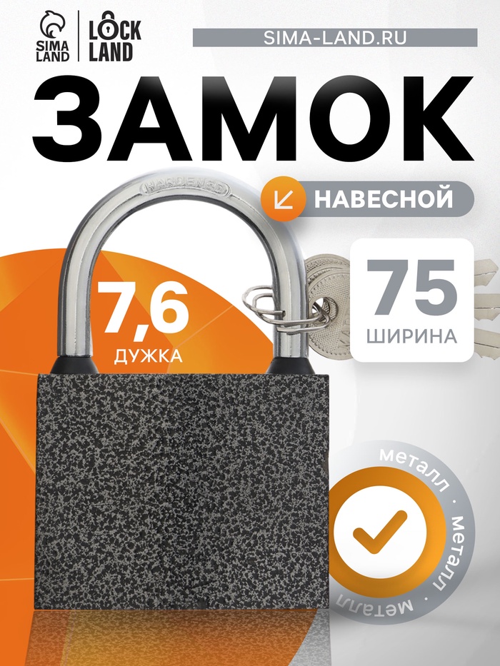 Замок навесной LOCKLAND, с влагозащитной дужкой, 75 мм