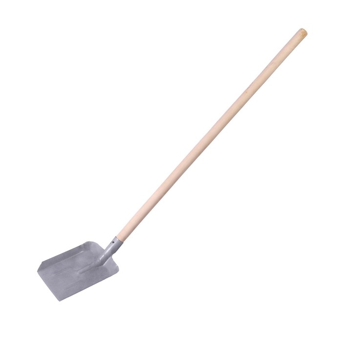 Совковая лопата с черенком, 141 см — это готовый к работе инструмент для перемещения сыпучих материалов. Его конструкция с рёбрами жёсткости и деревянной рукоятью рассчитана на продолжительные погрузочные и уборочные работы.