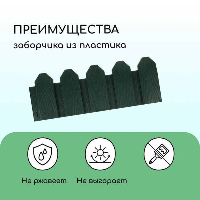Ограждение декоративное, 18×300 см, 6 секций, пластик, зелёное, «Дачник»