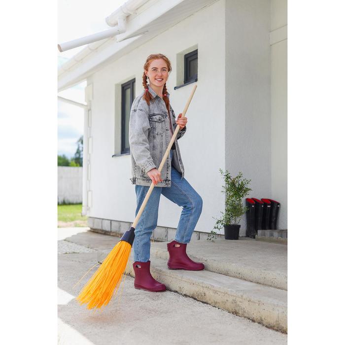 Метла подходит для уборки сухой и мокрой листвы, снега, грязи и другого мусора. Инструмент состоит из пластиковой насадки и берёзового черенка. Если исключить контакт с щелочами и кислотами, то оно прослужит больше двух лет.