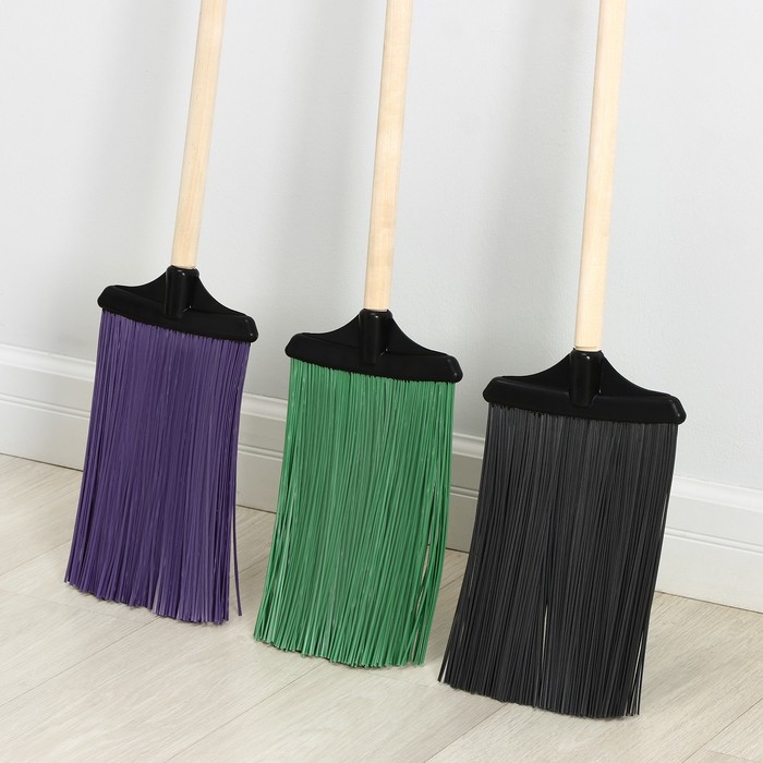 Метла полипропиленовая «Плоская», с черенком, МИКС