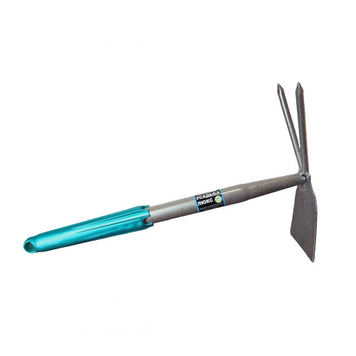 Используется для рыхления почвы и прополки. Позволяет работать на узких участках без повреждения растений. Изготовлена из стали, покрыта защитной краской, надёжно прикреплена к деревянной ручке.