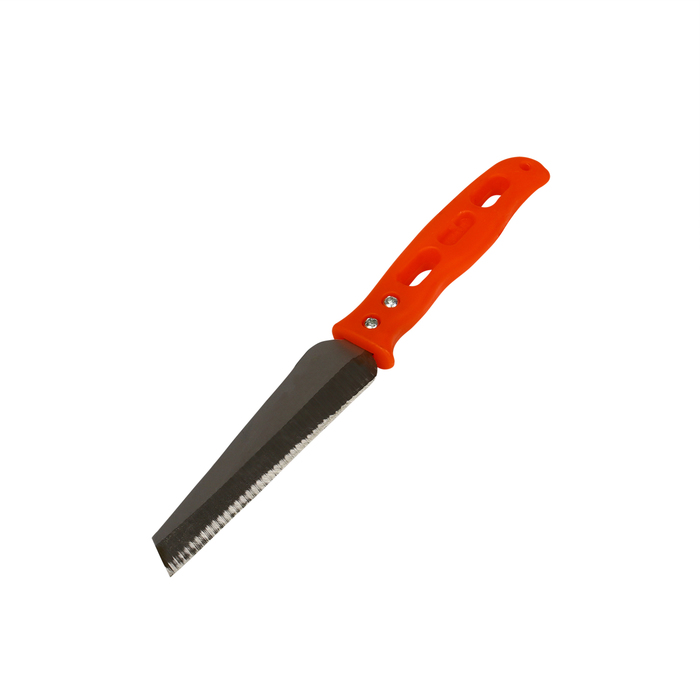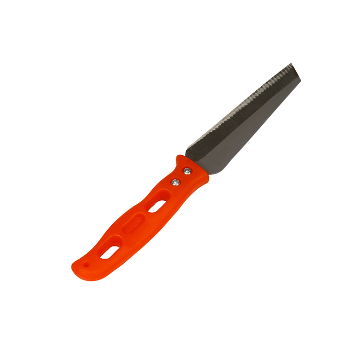 Этот компактный садовый нож создан для работы с деревом и позволяет легко справляться с обрезкой мелких веток, срезкой цветов, а также проведением прививок. Прививка — это перенесение части одного растения на другое. Они срастаются, и получается новый цельный организм. Такая процедура поможет получить понравившийся сорт на своём участке. Обычный кухонный нож не подойдёт для такой тонкой работы: его лезвие недостаточно острое. Малейший изгиб испортит качество среза. Тут нужен специальный инструмент, такой как садовый нож. Особая форма лезвия и специальная заточка сделают ровный срез.