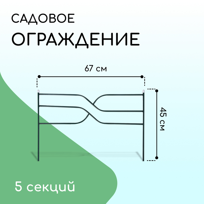 Ограждение декоративное, 45×335 см, 5 секций, металл, зелёное, «Ялиль»