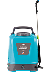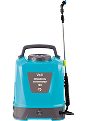 Аккумуляторный распылитель Velli с баком объемом 10 литров.  Легкий и компактный, не требует усилий при использовании.