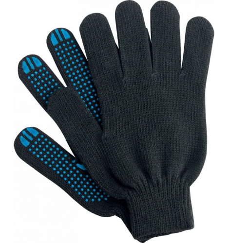 Перчатки Х\Б с ПВХ 5-ти ниточные, серые с точками (зеленый ободок) 1 пара арт. 5145 /400 шт Россия