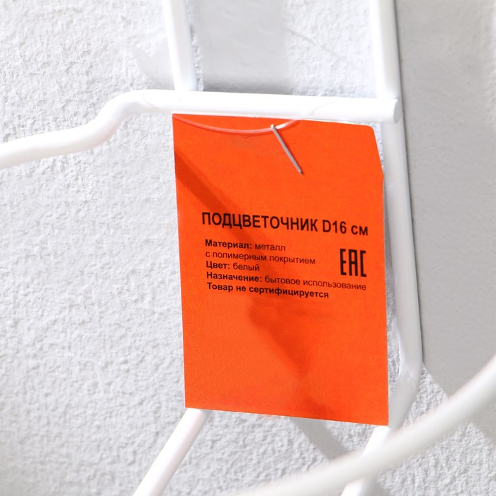 Подвес для кашпо «Одиночка», d=16 см, настенный, белый