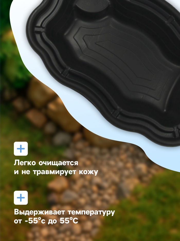 * пруд из гигиеничного пластика просто очищать от загрязнений;