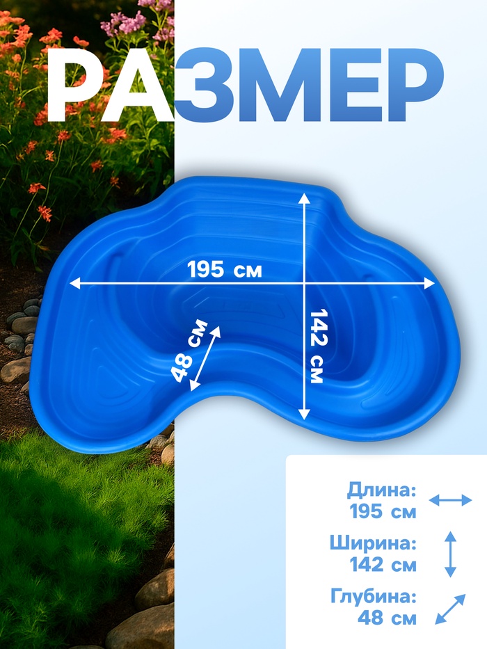 Пруд садовый пластиковый, 440 л, синий