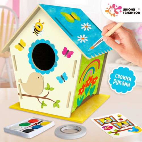 С набором для творчества «Делаем скворечник» у вас получится настоящая деревянная кормушка для птиц.