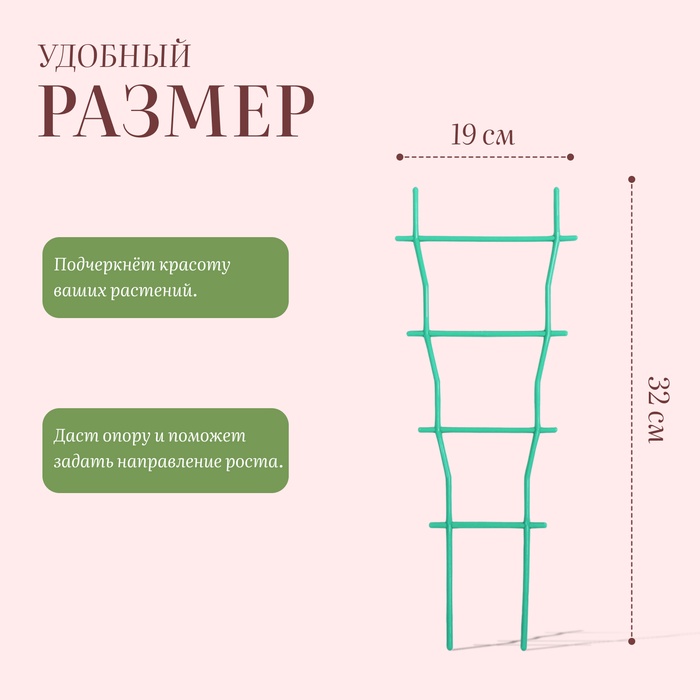 Используя нашу шпалеру, вы не только обеспечиваете функциональную поддержку для своих растений, но и значительно упрощаете уход за зелёными насаждениями. Прочная конструкция и устойчивый материал делают её долговечной и надёжной в использовании.