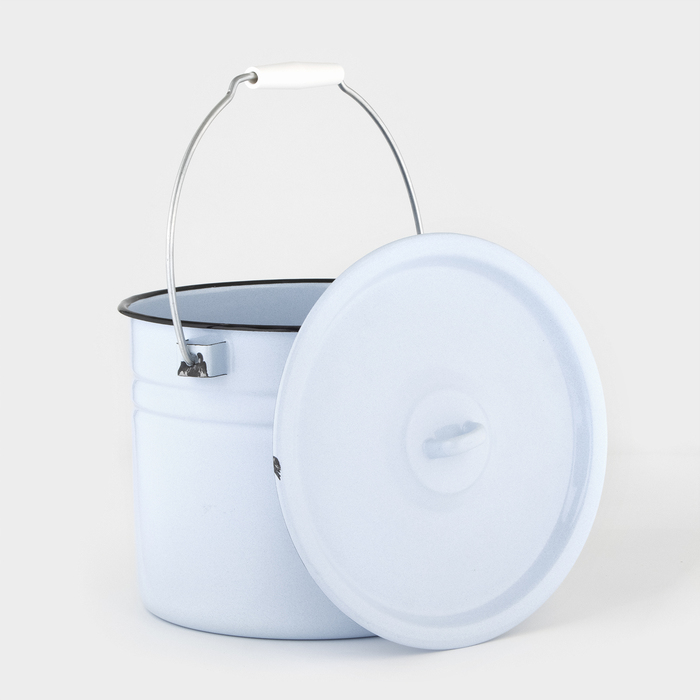 УЦЕНКА Ведро эмалированное цельнотянутое, 9 л, с крышкой, светлое