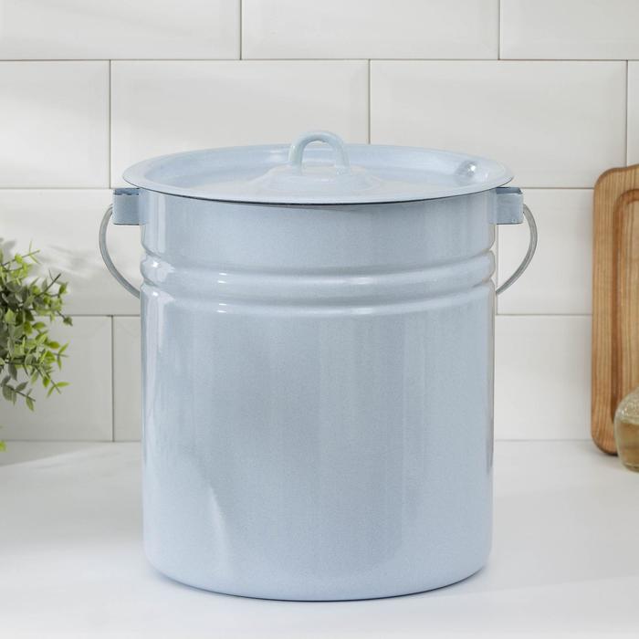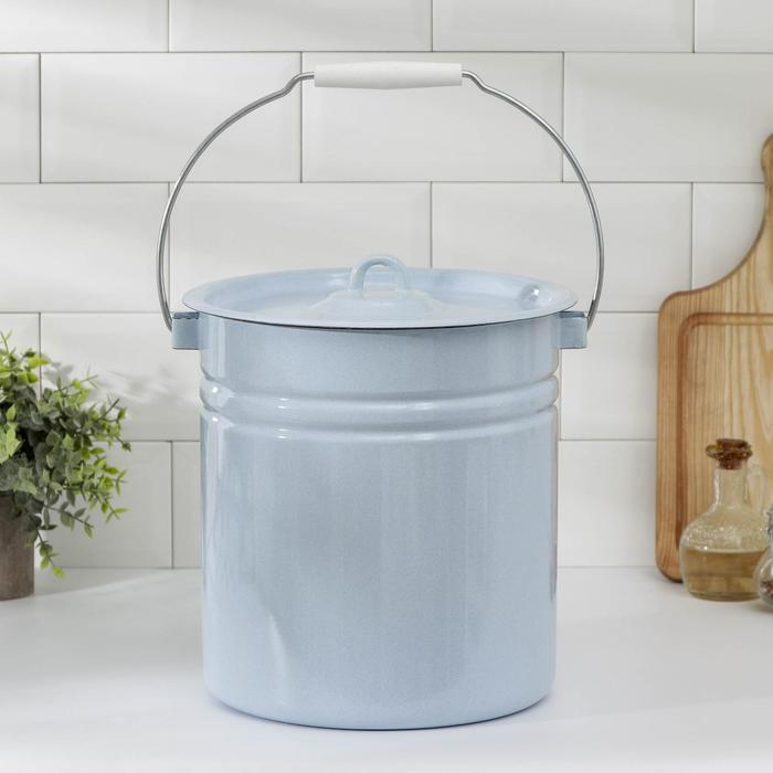 Ведро эмалированное, 12 л, цельнотянутое, с крышкой, голубое
