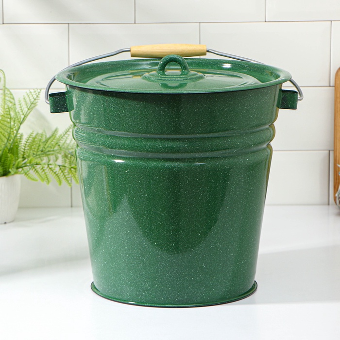 Ведро эмалированное изготовлено из высококачественной стали с эмалированным покрытием. Эмалевое покрытие, являясь стекольной массой, не вызывает аллергию и надежно защищает пищу от контакта с металлом. Кроме того, такое покрытие долговечно, устойчиво к механическому воздействию, не царапается и не "сходит", а стальная основа практически не подвержена механической деформации, благодаря чему срок эксплуатации увеличивается. Ведро снабжено крышкой и металлической ручкой с деревянной вставкой для комфортной переноски.