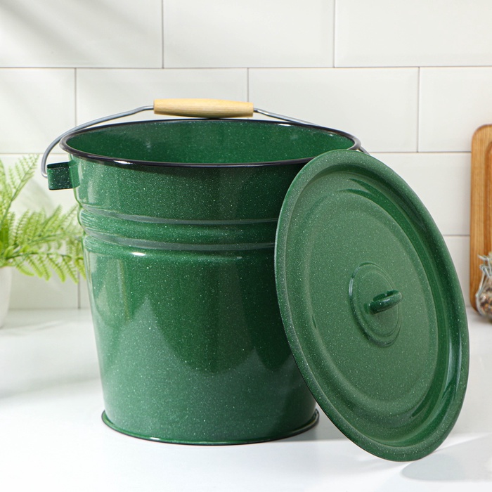 Ведро эмалированное изготовлено из высококачественной стали с эмалированным покрытием. Эмалевое покрытие, являясь стекольной массой, не вызывает аллергию и надежно защищает пищу от контакта с металлом. Кроме того, такое покрытие долговечно, устойчиво к механическому воздействию, не царапается и не "сходит", а стальная основа практически не подвержена механической деформации, благодаря чему срок эксплуатации увеличивается. Ведро снабжено крышкой и металлической ручкой с деревянной вставкой для комфортной переноски.