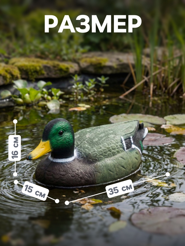 Используйте фигуру в качестве подсадного чучела для охоты. Его легкая основа и естественные оттенки позволяют изделию держаться на воде и не отпугивать других животных.