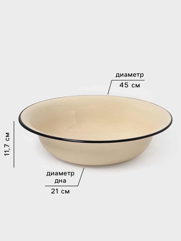 Таз эмалированный, 10 л, без декора, цвет слоновой кости