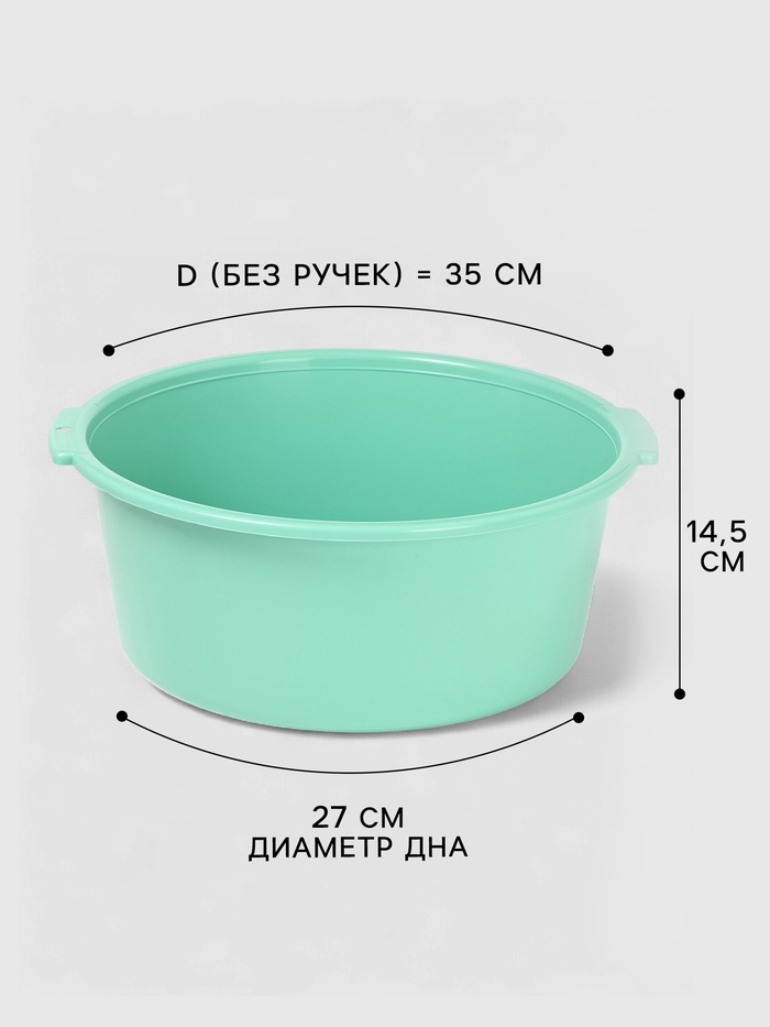 Таз хозяйственный круглый, 10 л, 37×35×14.5 см, мятный