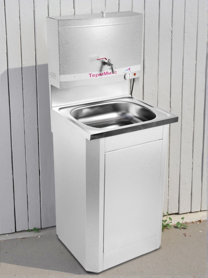 Умывальник "ТермМикс" предназначен для использования в местах без центрального водоснабжения. Мойка выполнена из нержавеющей стали. Объём бака 17 литров.