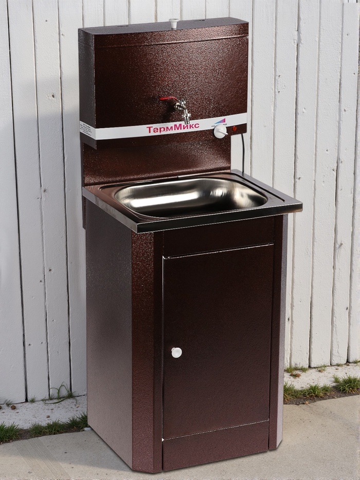 Умывальник "ТермМикс" предназначен для использования в местах без центрального водоснабжения. Мойка выполнена из нержавеющей стали. Объём бака 17 литров.