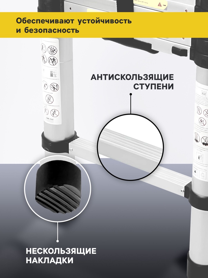 Лестница телескопическая в сумке ТУНДРА, алюминиевая, 13 ступеней, автомат, 3.8 м