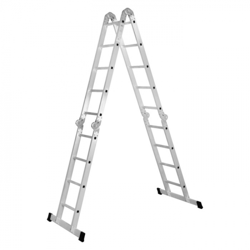 Инструмент для сложных объектов: Эта лестница становится решением для профессиональных бригад и владельцев объектов с высокими потолками. Монтаж подвесных систем, установка освещения в атриуме, фасадные работы — конструкция принимает нужную форму там, где обычные лестницы не справляются. Асимметричное строение секций добавляет гибкости при планировании работ.