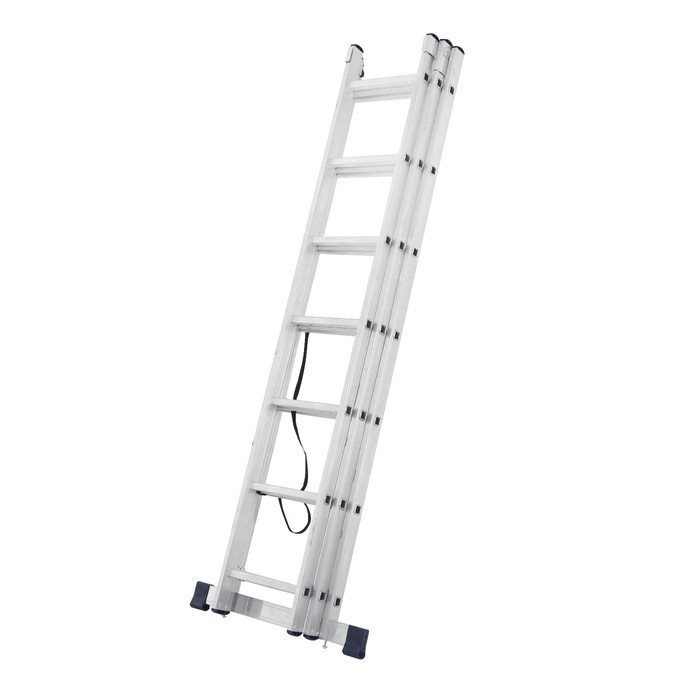 * Три секции по 7 ступеней — оптимальная универсальность: Лестница работает как приставная (до 4.2 метра), раздвижная конструкция или компактная стремянка. Это охватывает большинство бытовых и ремонтных задач в помещениях со стандартной высотой потолков.