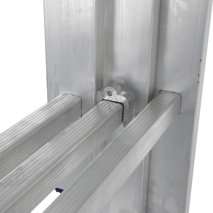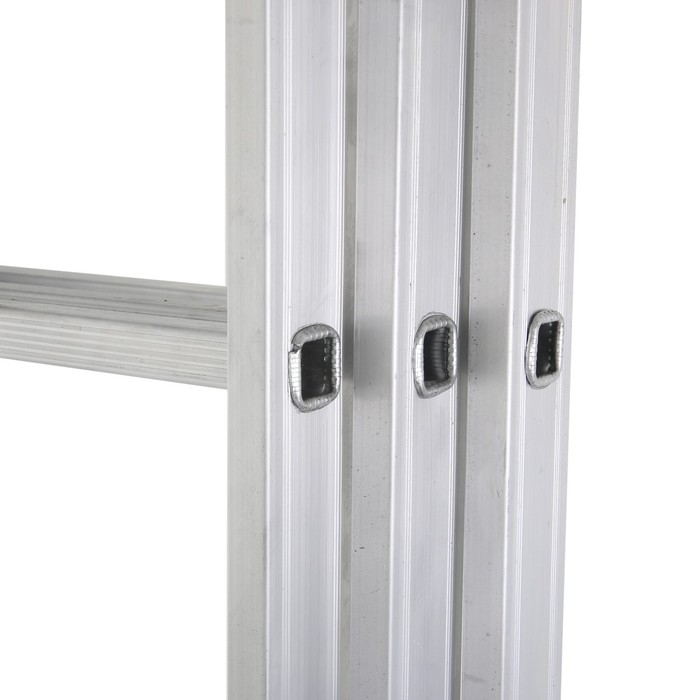 Надежность для ежедневного использования: Эта модель создана для интенсивной эксплуатации. Все соединения секций выполнены на стальных траверсах с надежными замками-фиксаторами. Лестница станет вашим главным помощником для монтажа, отделки, ремонта коммуникаций и других высотных работ, обеспечивая комфорт и полную безопасность.