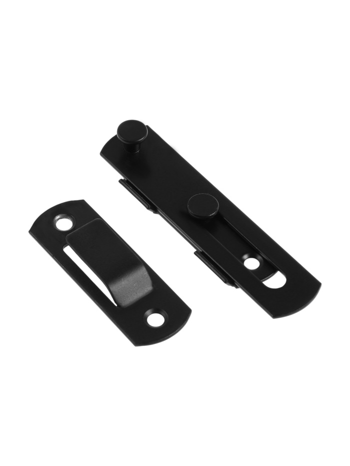 Накладной шпингалет 100 мм, чёрный — универсальный прямой запор для створок и ворот. Увеличенная длина и чёрное покрытие делают его подходящим для уличного и технического применения.