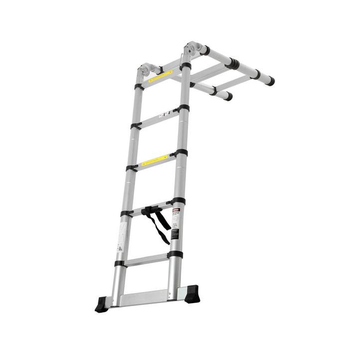 * Двойная конфигурация использования: Пять ступеней с каждой стороны работают как классическая стремянка или как приставная лестница. Одна конструкция заменяет два типа оборудования.