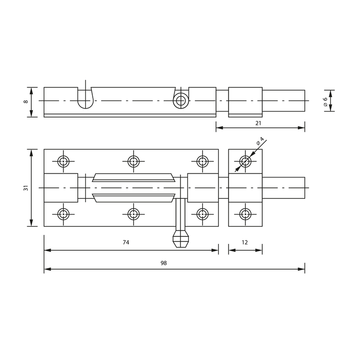* Прочная конструкция: Изготовлена из качественного металла, эта задвижка выдерживает многократное использование и обеспечивает долговечность. Идеальна для деревянных и металлических дверей.