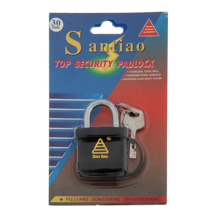 Замок навесной, 30 мм, влагозащищенный, короткая дужка, 3 ключа