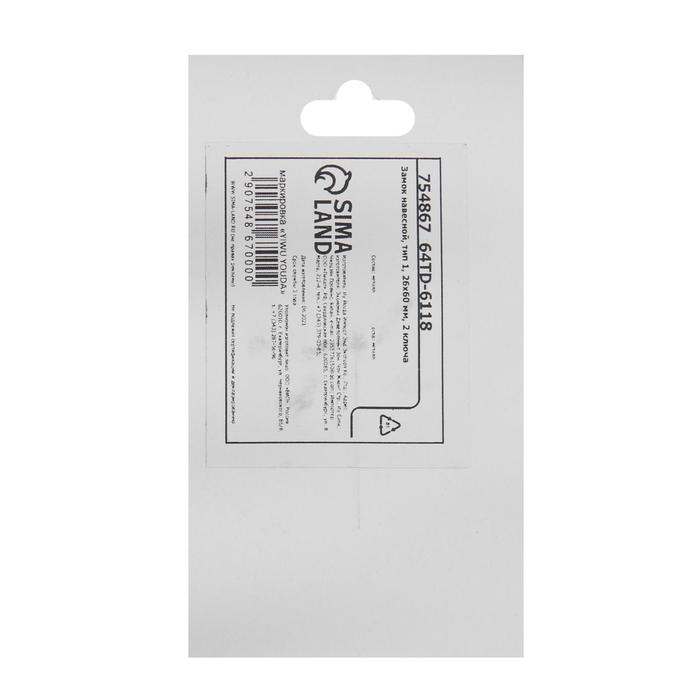 Замок навесной, тип 1, 26×60 мм, 2 ключа