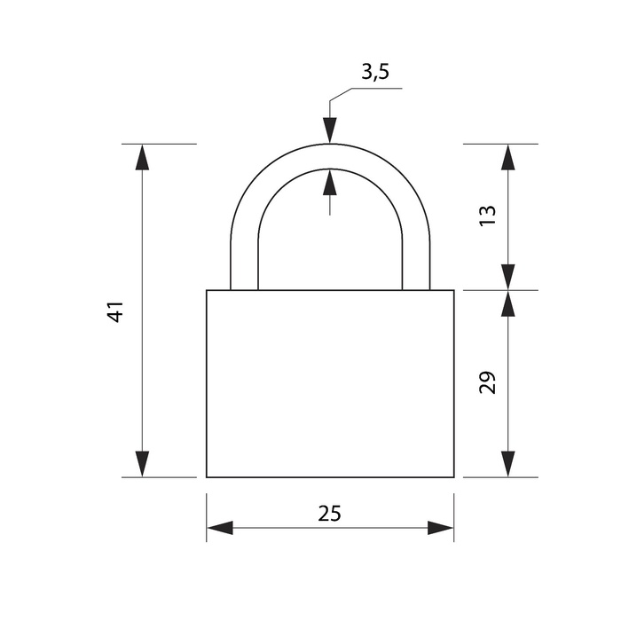 Замок навесной, тип 10, 25×42 мм, 2 ключа