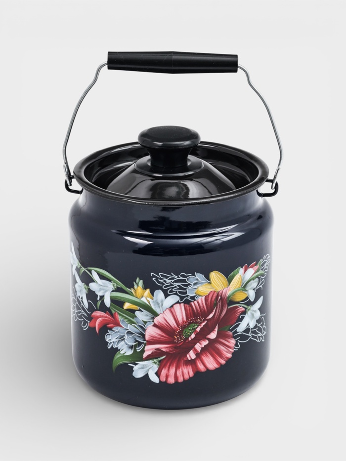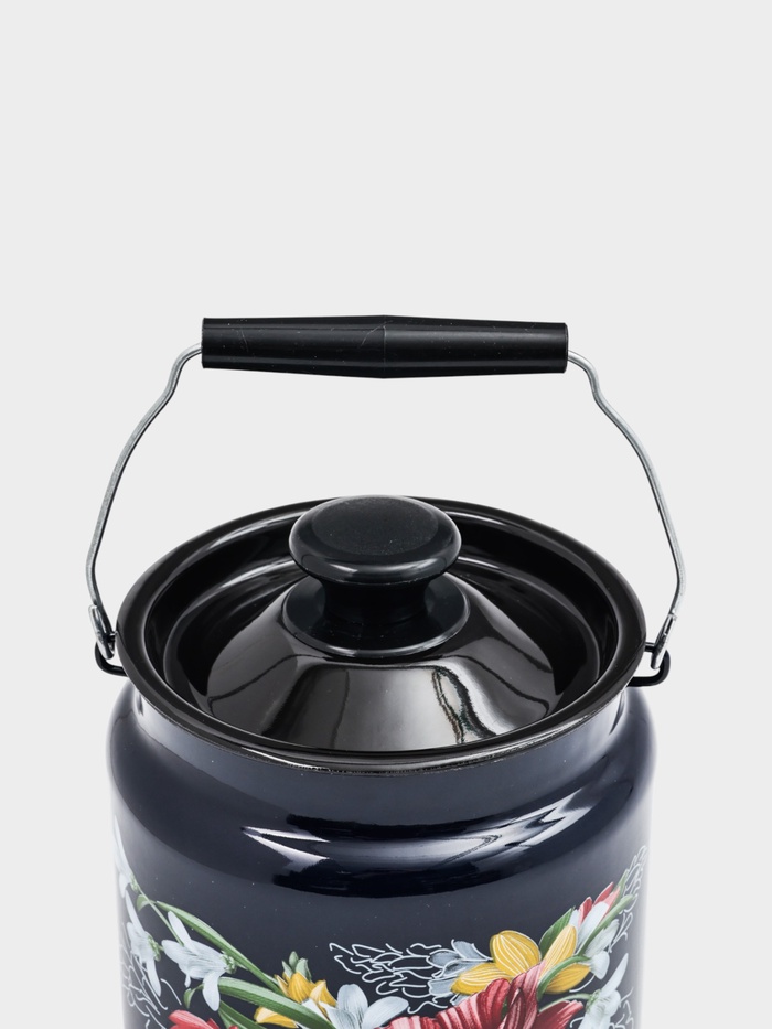 Эмалированный бидон на 3 литра с крышкой и ручкой — проверенная классика для дачи, пикника или кухни. Чёрный корпус с аккуратным рисунком сочетает гигиеничность, прочность и простоту ухода.