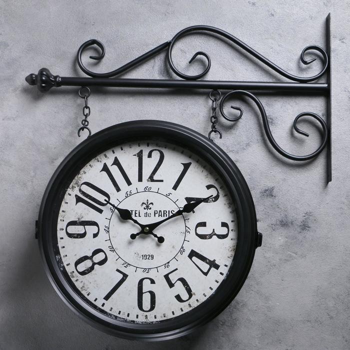 УЦЕНКА Часы настенные интерьерные «Вокзальные», двусторонние, на подвесе, 55×50 см, от батареек 2×АА