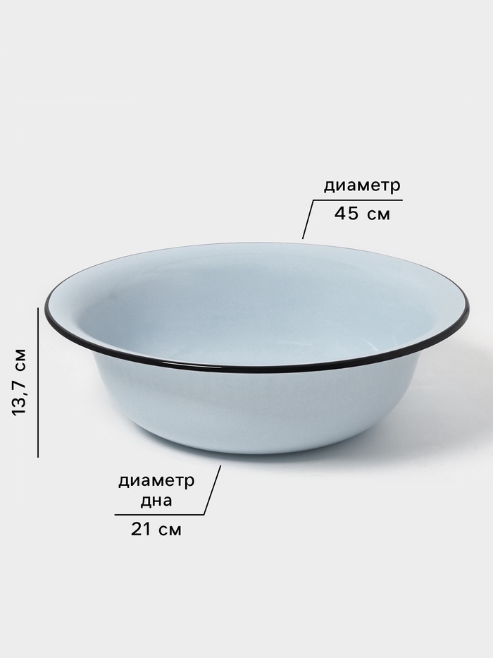 Гладкая эмалевая поверхность, круглая форма и устойчивое дно делают его удобным для стирки, замачивания, переборки урожая или мытья посуды на природе.