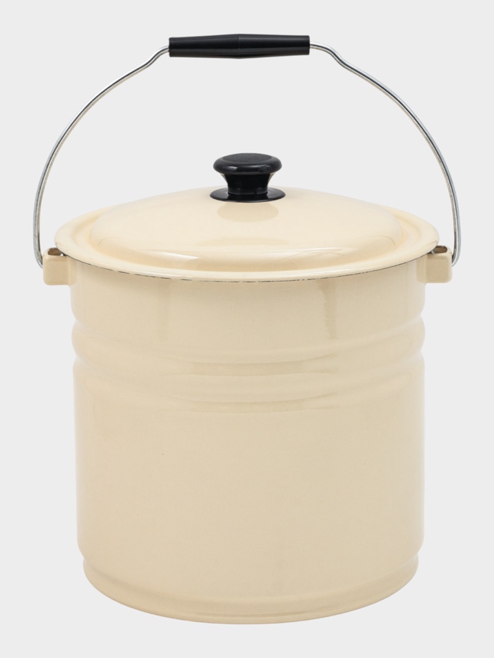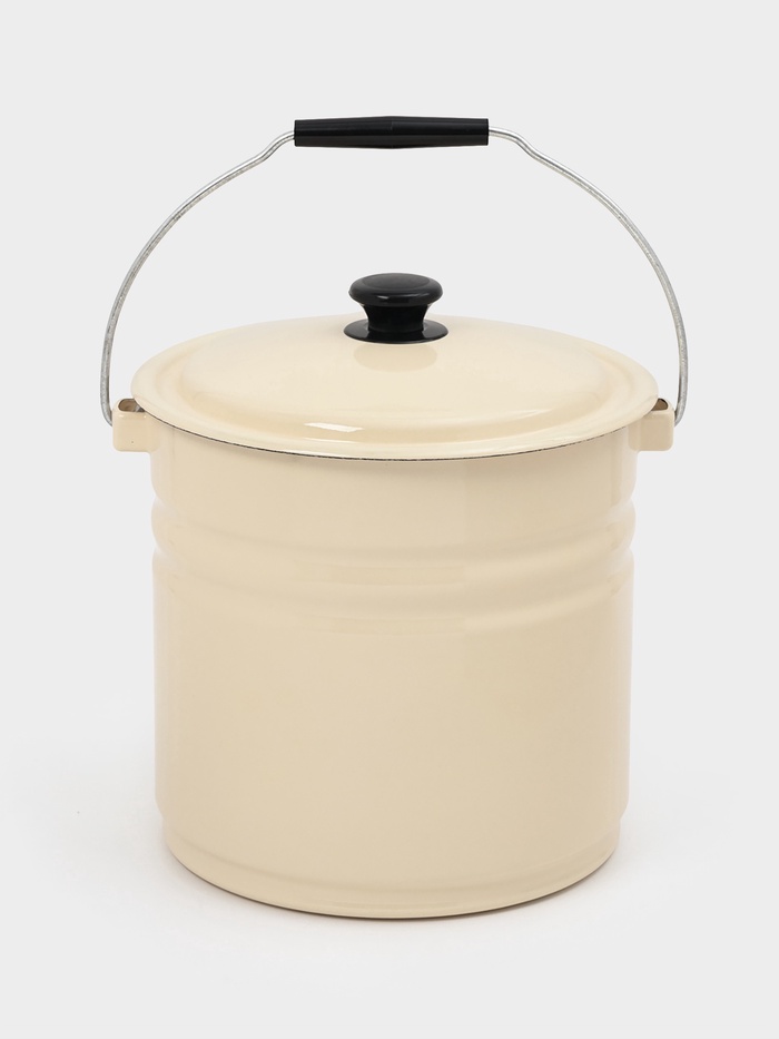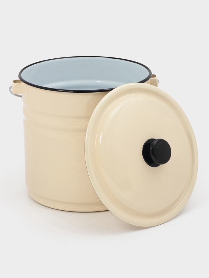 * Удобство в использовании: ручка обеспечивает комфортный хват даже при полной загрузке. Крышка защищает содержимое от пыли и посторонних запахов — идеально для хранения воды, молока, рассола или урожая с огорода.