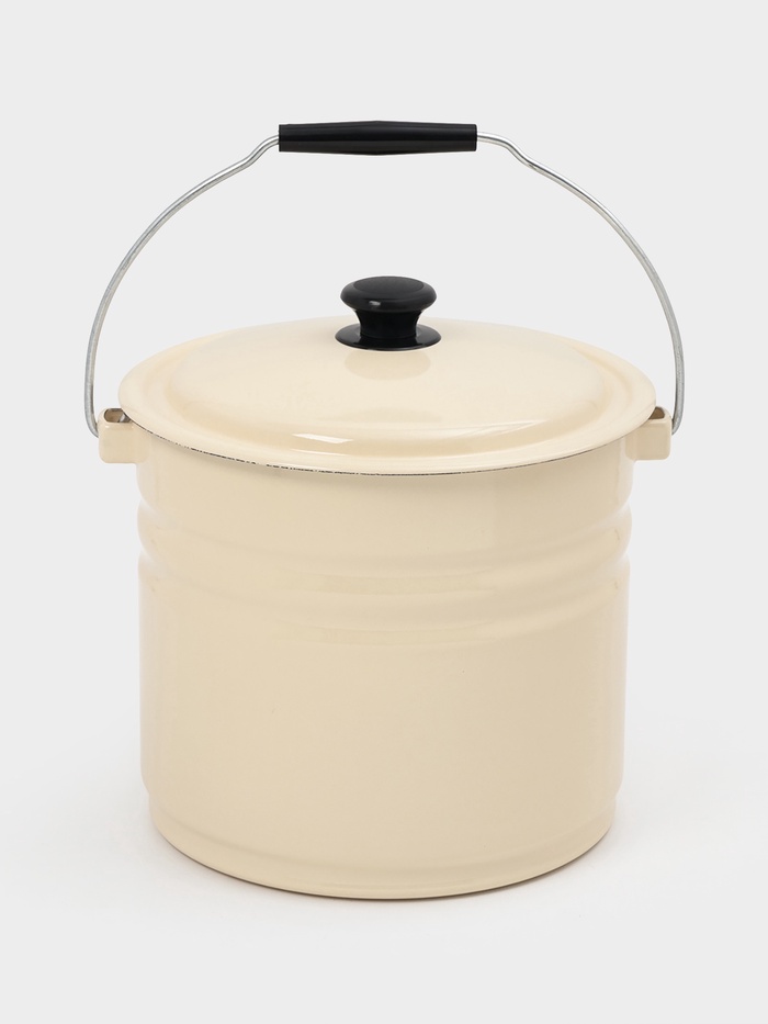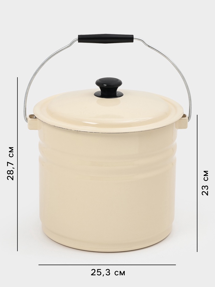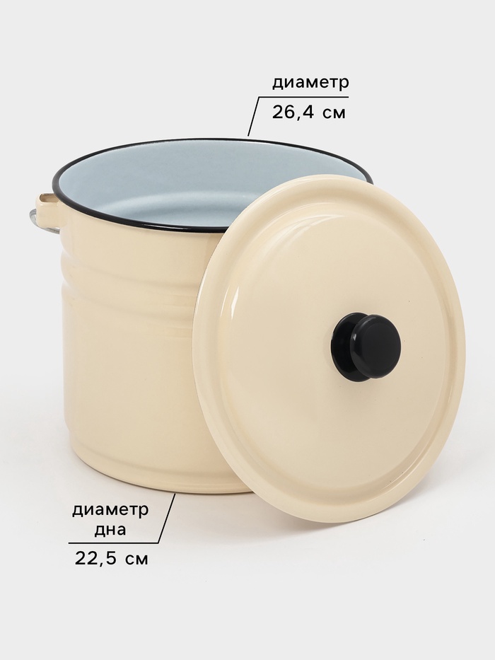 Ведро эмалированное, 10 л, без декора, с крышкой и ручкой, слоновое