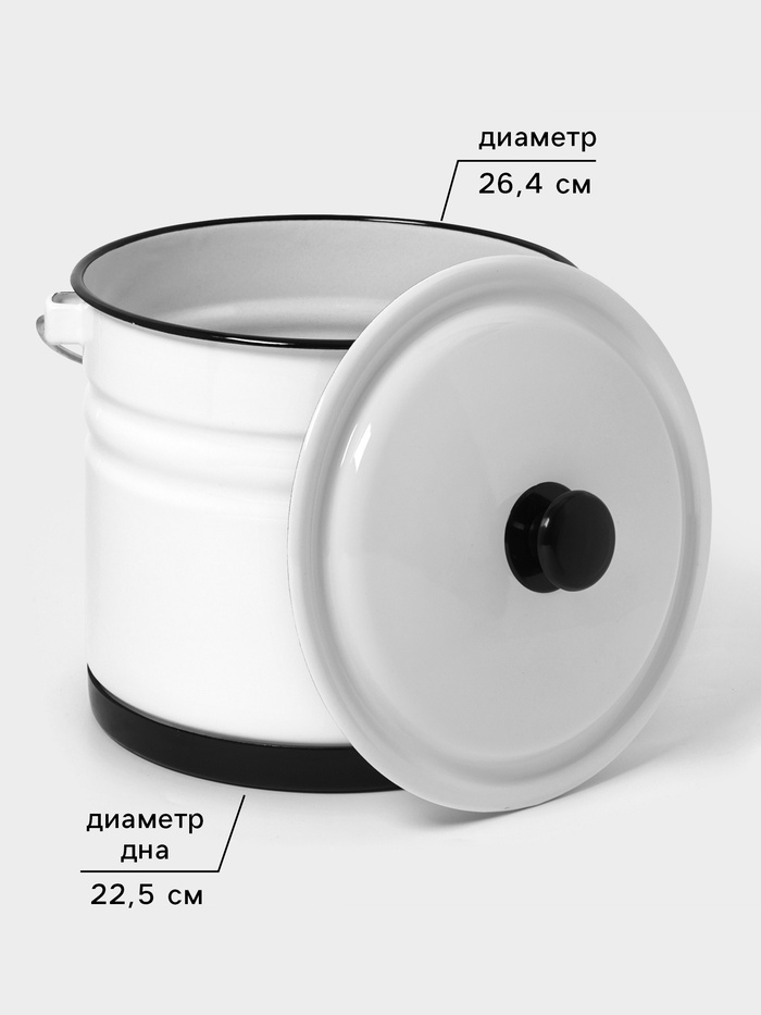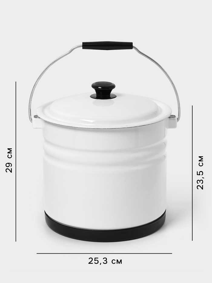 Ведро эмалированное, 10 л, с крышкой и ручкой, на подставке, белое