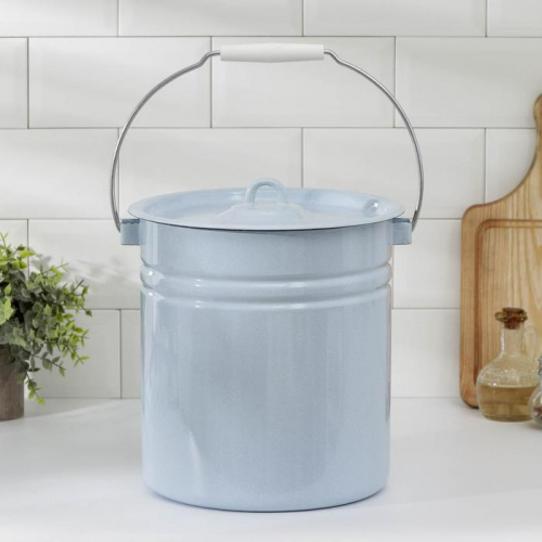 Ведро эмалированное, 12 л, с крышкой и ручкой, белое