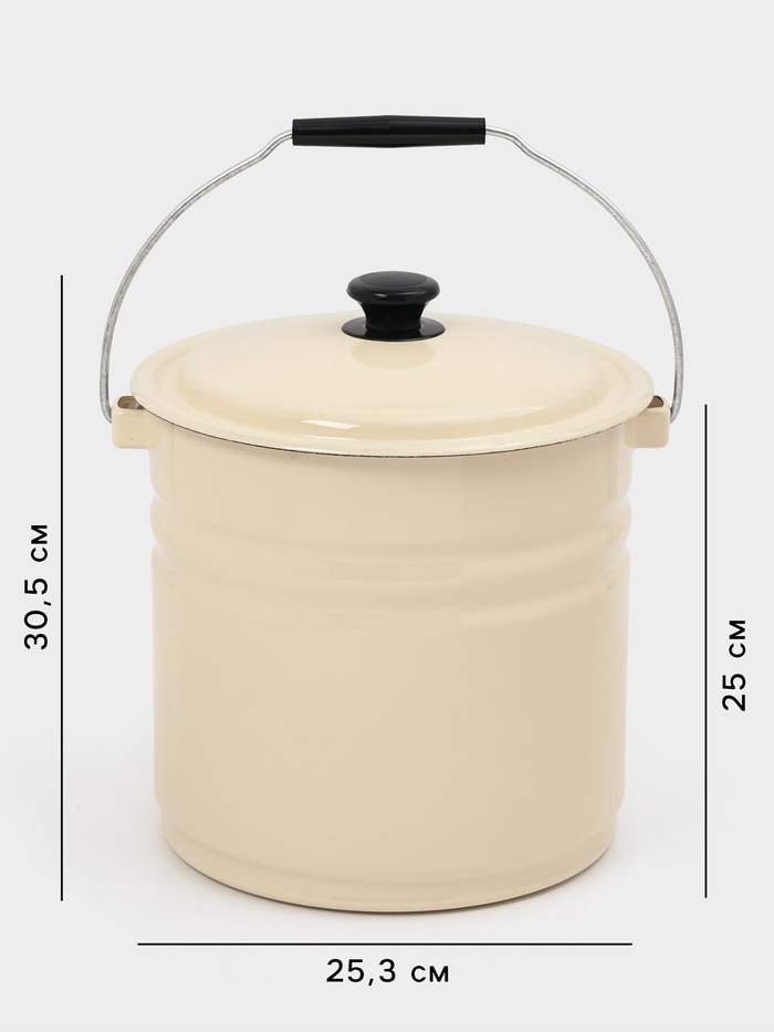 Ведро эмалированное, 12 л, с крышкой и ручкой, цвет слоновой кости