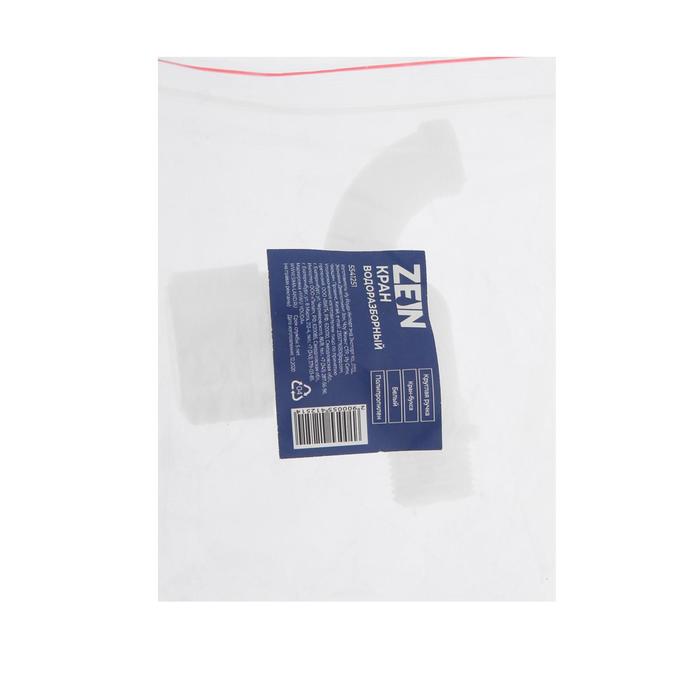 Кран водоразборный ZEIN, 1/2", с круглой ручкой, PP, кран-букса, белый