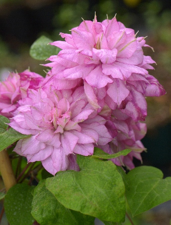 МАХРОВЫЙ и полумахровый (40-60 лепестков) розовый с лиловым легким напылением, второе цветение простыми цветками. Н 200см, Обрезка: VI,130см, Цветение: 5-6 / 8-9, Ø 12-14см