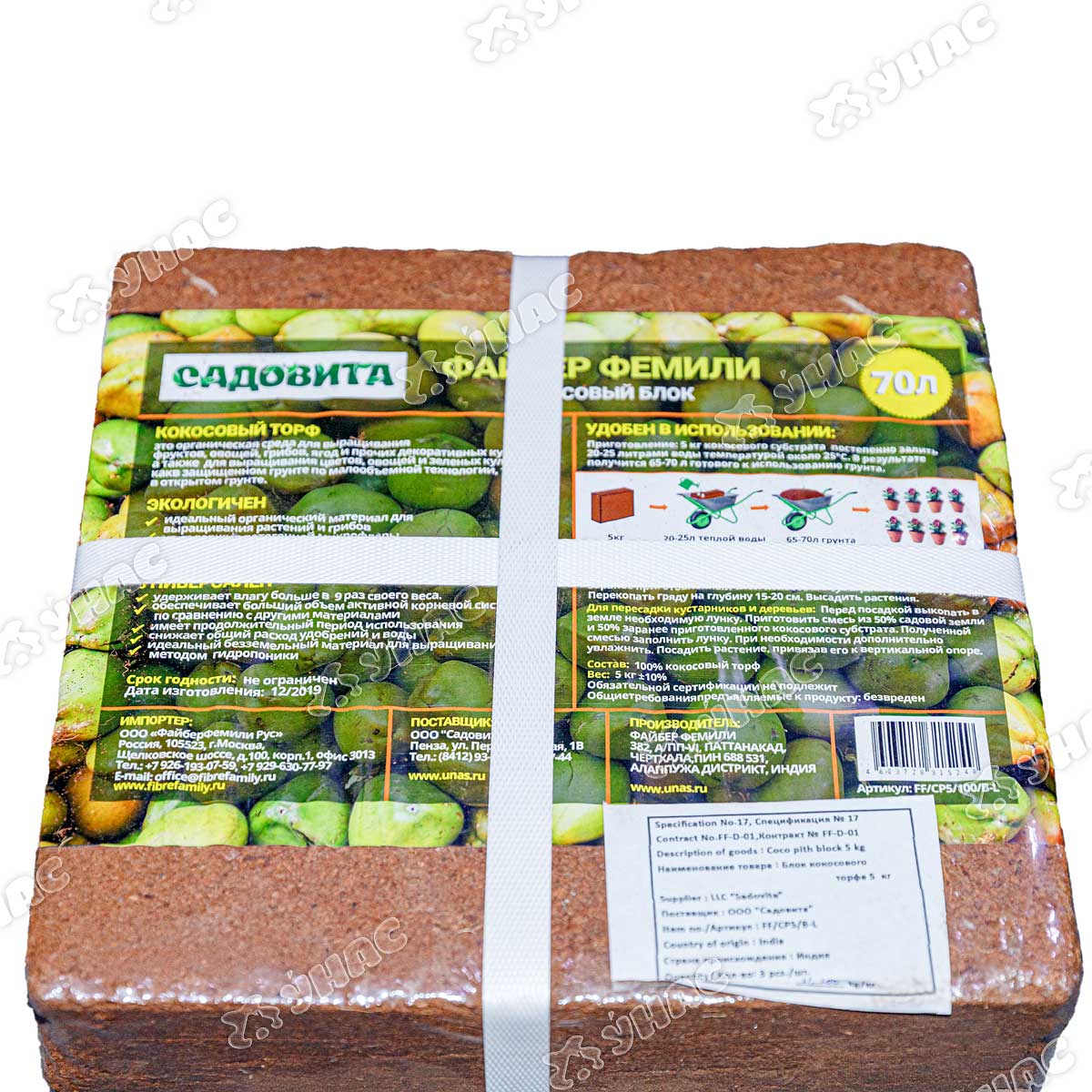 Кокосовый субстрат 5кг (70л) универсальный (блок) (FF/CP/100LB)
