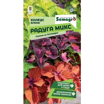 Улучшенная радужная смесь тропического растения представляет собой сочетания листьев зелено-желтого, бронзового и красного цветов. Украсит клумбу открытого грунта в теплый сезон, а в закрытом помещении будет радовать глаз на протяжении всего года. Нуждается в обрезке для густоты. Если растения находятся в саду, они предпочитают полутень. Яркое дополнение интерьера круглый год.